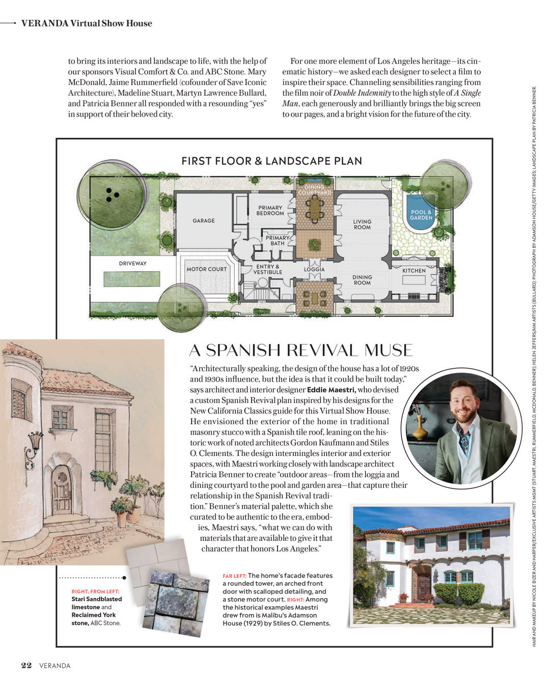 With the architectural framework in place, Veranda invited Mary McDonald, Jaime Rummerfield, Madeline Stuart, Martyn Lawrence Bullard, and Patricia Benner to shape the interiors and landscape. Maestri Studio’s architecture set the stage for each designer’s vision, establishing a Spanish Revival framework for layered cinematic narratives.
