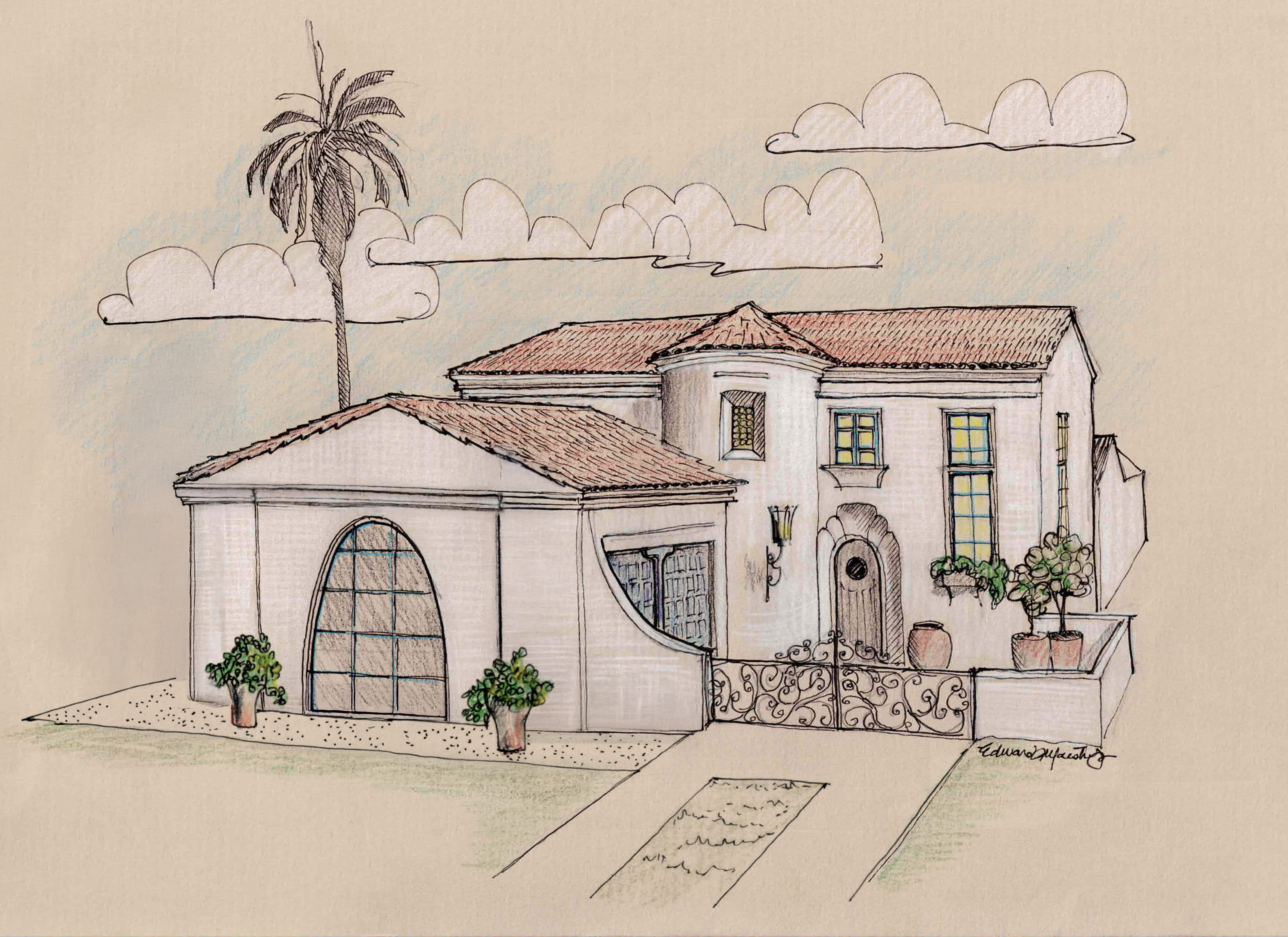 At the center is a custom Spanish Revival plan by Eddie Maestri, conceived as both a study in heritage and a proposition for how these homes can be built today. The design draws from the work of early California architects such as Gordon Kaufmann and Stiles O. Clements, grounding the architecture in the proportion, materiality, and restraint that defined the period.