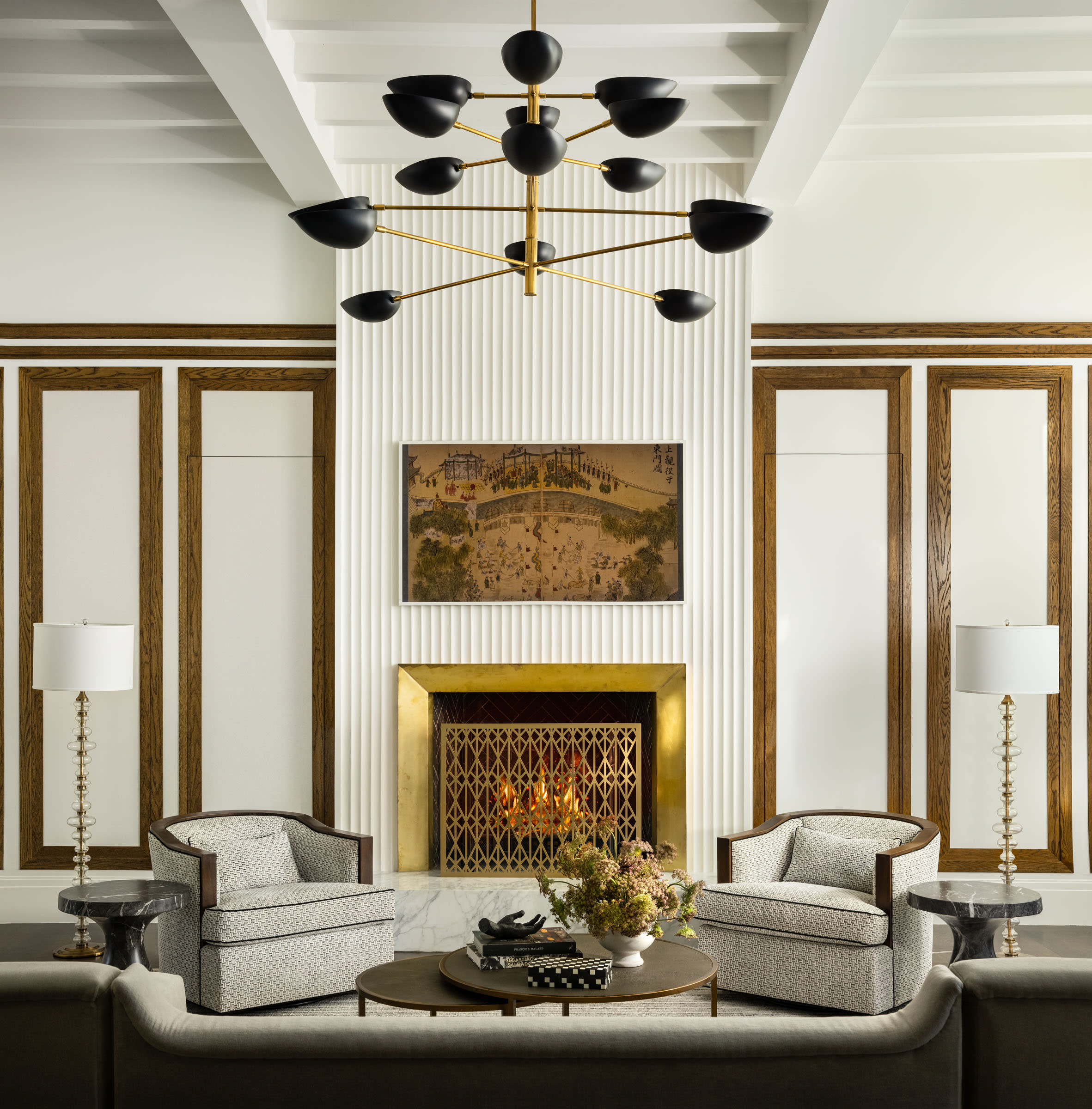 Maestri Studio developed the interiors as an extension of the home’s architecture, designing custom millwork, cabinetry, and architectural details throughout. Rich wood, sculptural stone, and tailored metalwork introduce subtle Art Deco influences that reflect the clients’ connection to New York while maintaining the warmth expected in a Dallas home.